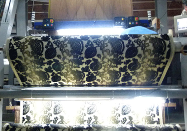 All the required processes for top finishing of Jacquard Velvets are integrated into one continuous fully synchronized automatic machine. The processes include beating/cleaning, steaming, multiple brushing, shearing, glazing/polishing.